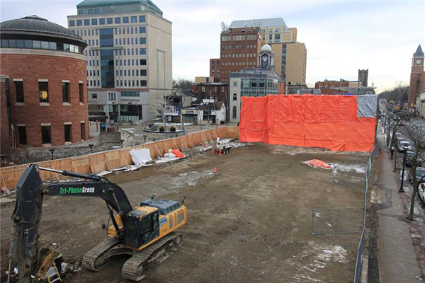 The demolition of City-owned properties at 30–60 Main Street North is now complete, marking a major milestone in preparing the site for an expanded public space. Construction is now underway to create a new public realm expanding Garden Square and reconnecting the space directly to Main Street.