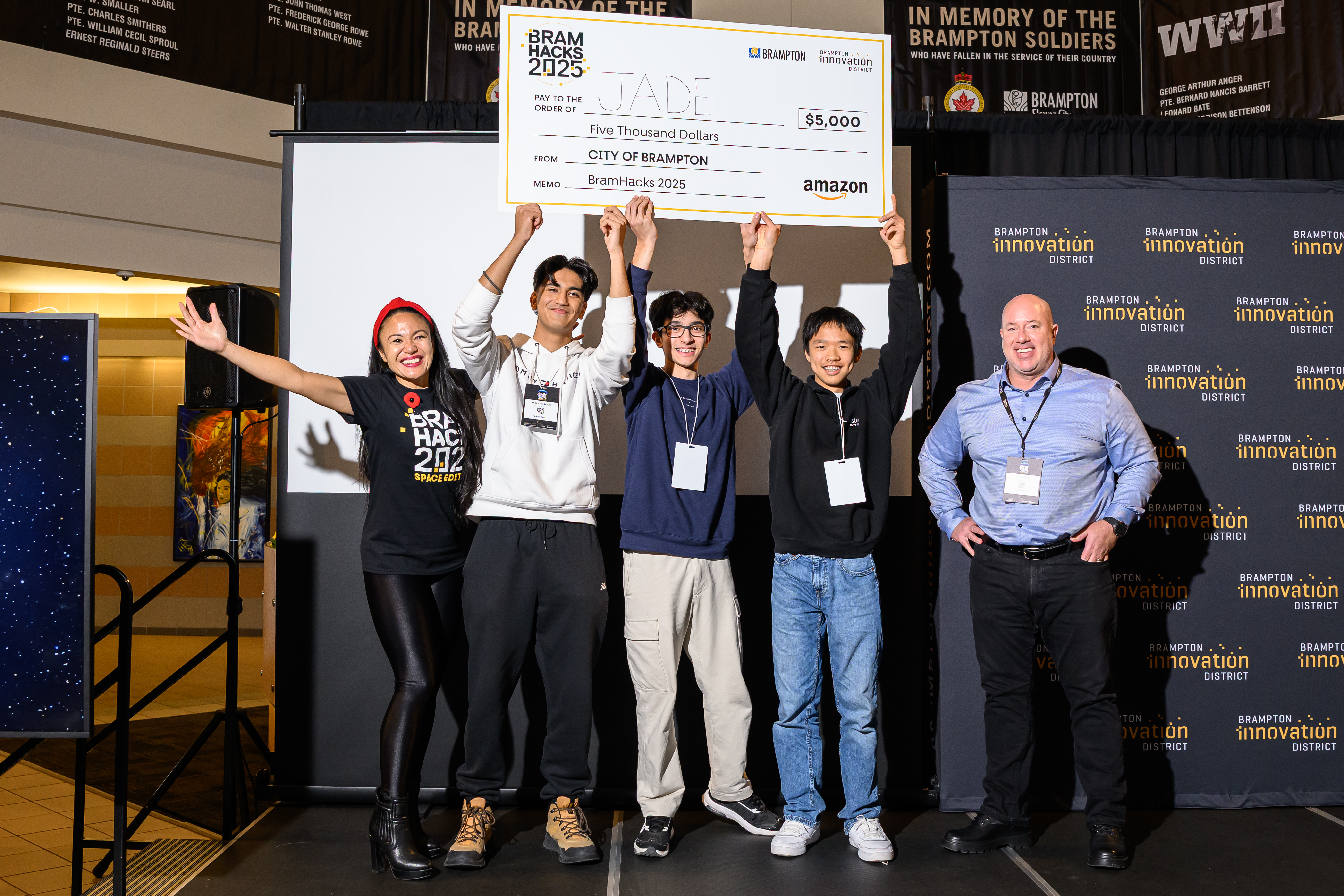 BramHacks 2025, administered by HackWorks, is a partnership between the City of Brampton’s Economic Development Office and Brampton’s Innovation District, proudly sponsored by Amazon, Greater Toronto Airports Authority, Canon Canada, Pizza2Go and Downtown Brampton BIA with support from local post-secondary institutions and industry mentors including Sheridan College, Toronto Metropolitan University, Zebra Robotics, Youth Culture, Make Stuff Move, Downtown Brampton BIA and Algoma University. In collaboration with Ibentos, a BHive start-up, this year’s hackathon introduced a digitally immersive experience powered by an AI assistant and virtual networking community, taking participant engagement to the next level.