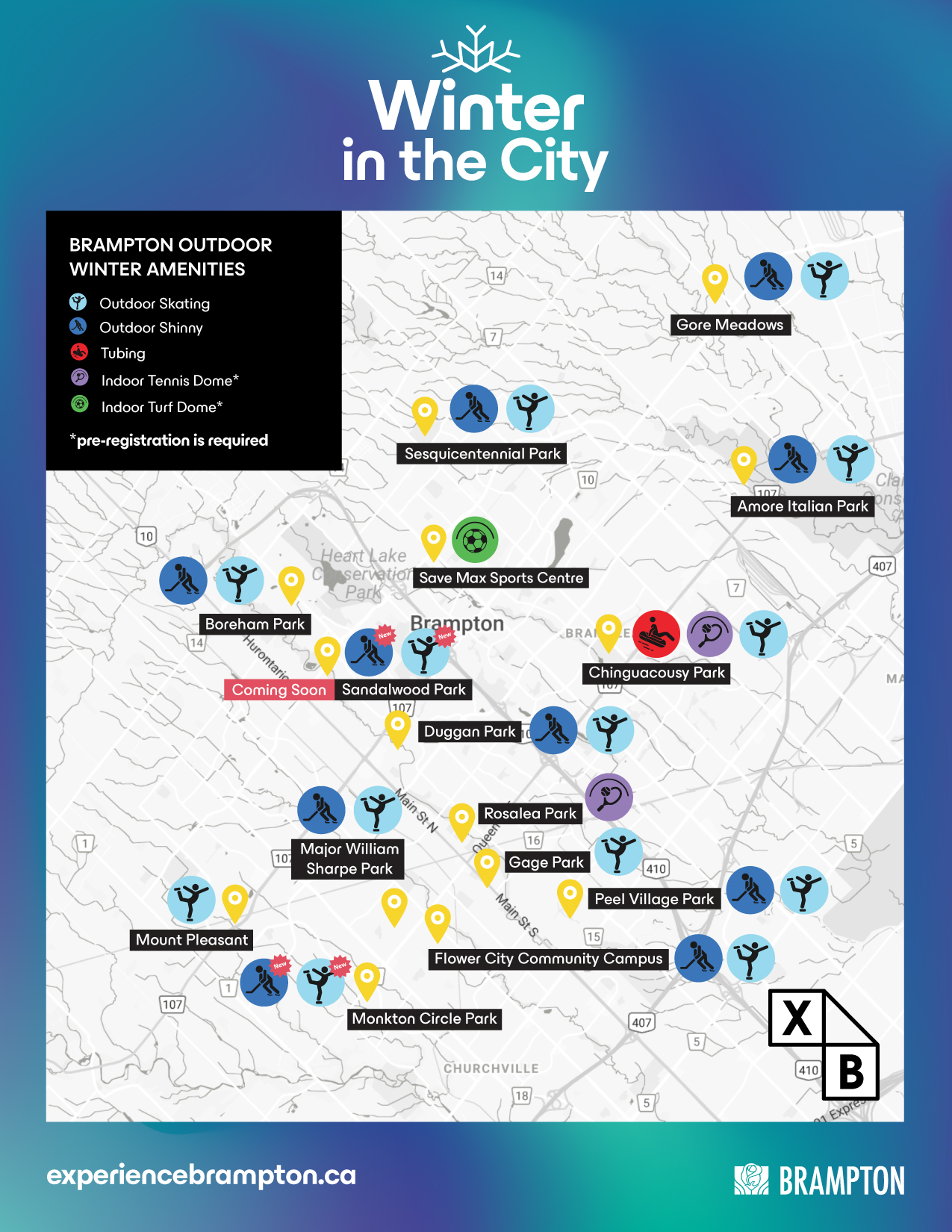 Programs & Activities Winter in the City Programs & ActivitiesSection Menu In this section RecreationCommunity Centres Balmoral Recreation CentreBob Callahan Flower City Seniors Centre Brampton Curling Club Community CentreCassie Campbell Community CentreCentral Public SchoolCentury Gardens Recreation CentreChinguacousy Park Picnic SheltersMount ChinguacousyTerry Fox Stadium Walking Track Chinguacousy Park Sandra Hames Centre General Information and GuidelinesTennis Membership & Court RatesMember Only LeaguesBook a CourtCurling Club Chinguacousy Wellness CentreChris Gibson Recreation CentreCollaborative Learning and Technology CentreEarnscliffe Recreation CentreEldorado ParkEllen Mitchell Recreation CentreGore Meadows Community Centre & LibraryGreenbriar Recreation CentreHowden Recreation CentreJim Archdekin Recreation CentreKen Giles Recreation CentreKnightsbridge Senior CentreMemorial ArenaMount PleasantPaul Palleschi Recreation CentrePeel Village Golf Course Book a Tee TimeGreen FeesFrequently Asked QuestionsBefore You Play Professor's Lake Recreation Centre Admission & Rental PolicyFrequently Asked QuestionsBeach Admission & RentalsInflatable Water Park Riverstone Community CentreRosalea Park Tennis FacilitySave Max Sports CentreSusan Fennell Sportsplex Susan Fennell Youth HubTerry Miller Recreation Centre Programs & ActivitiesCurrently selected Adults 55+Swimming Register for Swimming ProgramsSwimming LessonsSwimming Lesson ConversionsAquatic LeadershipBrampton Lifesaving Club DanceCampsFitnessArts & MusicInclusive & Integration ProgramsNinja Course, Parkour & Rock ClimbingPreschoolSkatingSportsSplash Pads and Wading PoolsScience, Technology, Engineering, Arts & MathYouth Community Connections Youth Friendly DesignationBrampton Sport AllianceCommunity GroupsEducators ResourcesSports ResourcesSports Hall of Fame AboutCommitteeInducteesContactNominationsPhoto Gallery Customer Care Manage My AccountHow To RegisterProgram Guidelines and Admission StandardImportant FormsFrequently Asked Questions Facility Rentals How To BookFacility Rental User InsuranceOutdoor Sports FieldsOutdoor Field Status Recreation Revitalized Cassie Campbell Field Hockey DomeCentury Gardens Youth HubChris Gibson Recreation CentreEarnscliffe Park Cricket FacilityEmbleton Community CentreHowden Recreation CentreMemorial ArenaProfessor's Lake Recreation CentreRiverstone Community Centre EnhancementsSandalwood Heights Adventure Park Victoria Park ArenaAtiba Hutchinson Soccer CourtBalmoral Recreation CentreCentral Peel Turf FieldChinguacousy Wellness CentreCollaborative Learning Technology Centre Field of DreamsGore Meadows Activity HubPaul Palleschi Recreation CentreRiverstone Community CentreRosalea Park Winter Tennis DomeSandalwood Heights TrackSave Max Sports CentreSusan Fennell SportsplexSusan Fennell Sportsplex Net-zero Carbon Retrofit Susan Fennell Sportsplex Youth HubTurner Fenton Cricket Pitch Recent Page Content Exciting Winter Adventures Await!This season, embrace winter with a range of fun activities in Brampton! Enjoy outdoor skating, snow tubing and more in a true winter wonderland for all Brampton residents to explore.To discover more Winter in the City events, visit www.experiencebrampton.ca. Winter Amenity MapWinter wonderland opportunities across Brampton. View MapBook Last Minute Turf and Ice RentalsLooking for extra ice or turf time? Book last-minute rentals online up to 48 hours in advance for hockey, skating, or soccer and get active this winter.Learn MoreChinguacousy Park Sandra Hames CentreServe up some fun this winter at the tennis dome.Learn MoreFamily DayCelebrate Family Day with us a variety of free and paid family-friendly activities, city-wide!Learn MoreFree Indoor SkatesGenerously Sponsored by Capital Power.Learn MoreIndoor Turf DomeExplore drop-in activities and the walking track at Save Max Sports Centre’s indoor turf dome. Learn MoreMount ChinguacousyExperience winter fun for all ages with snow tubing.Learn MoreOutdoor SkatingLace up your skates and enjoy the fresh air this winter at outdoor rinks city-wide.Learn MoreReady, Set, Play!Spot Buzz in your community and join the fun! Try a new game or sport and enjoy inclusive activities for all ages and abilities. Learn more about the recreation programs and services available to you.Learn MoreRosalea Park Tennis FacilityStay active this winter and enjoy a game of tennis at the Rosalea tennis bubble. Learn MoreWinter Break and PA Day CampsMake school break an adventure! Join us for winter break camps December 22 - January 2. Learn MoreWinter ProgrammingRegistered and drop-in programs.Learn MoreYouth Sport DevelopmentDevelop your skills with professional instruction at arenas and outdoor rinks across Brampton. All skill levels welcome.Learn MoreCompliance Detailsjavascript:if (typeof CalloutManager !== 'undefined' && Boolean(CalloutManager) && Boolean(CalloutManager.closeAll)) CalloutManager.closeAll(); commonShowModalDialog('{SiteUrl}'+ '/_layouts/15/itemexpiration.aspx' +'?ID={ItemId}&List={ListId}', 'center:1;dialogHeight:500px;dialogWidth:500px;resizable:yes;status:no;location:no;menubar:no;help:no', function GotoPageAfterClose(pageid){if(pageid == 'hold') {STSNavigate(unescape(decodeURI('{SiteUrl}'))+ '/_layouts/15/hold.aspx' +'?ID={ItemId}&List={ListId}'); return false;} if(pageid == 'audit') {STSNavigate(unescape(decodeURI('{SiteUrl}'))+ '/_layouts/15/Reporting.aspx' +'?Category=Auditing&backtype=item&ID={ItemId}&List={ListId}'); return false;} if(pageid == 'config') {STSNavigate(unescape(decodeURI('{SiteUrl}'))+ '/_layouts/15/expirationconfig.aspx' +'?ID={ItemId}&List={ListId}'); return false;} if(pageid == 'tag') {STSNavigate(unescape(decodeURI('{SiteUrl}'))+ '/_layouts/15/Hold.aspx' +'?Tag=true&ID={ItemId}&List={ListId}'); return false;}}, null);0x00x1ContentType0x01898Document Set Version History/_layouts/15/images/versions.gif?rev=44javascript:SP.UI.ModalDialog.ShowPopupDialog('{SiteUrl}'+ '/_layouts/15/DocSetVersions.aspx' +